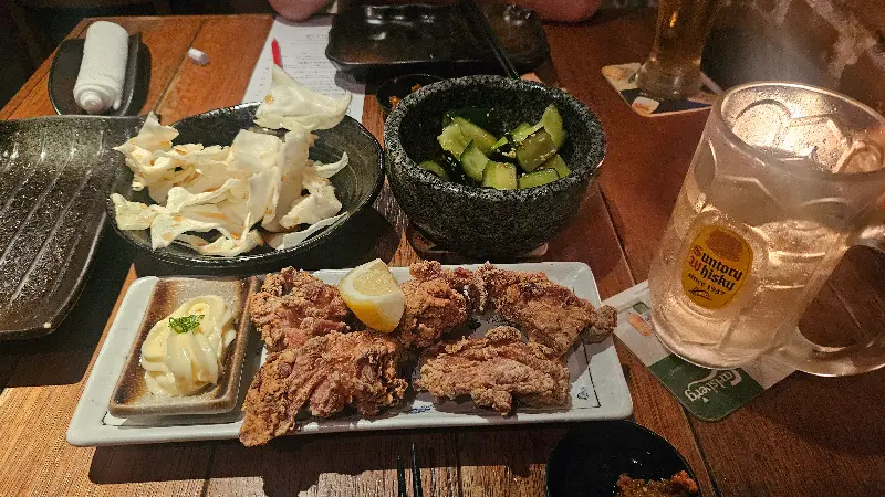 벽돌과 나무 소재를 사용한 인테리어는 따뜻하고 아늑한 느낌을 더합니다. 사케보다는 시원한 맥주 한 잔이 잘 어울리는 분위기입니다. 실제로 많은 사람들이 맥주를 마시며 즐거운 시간을 보내고 있었습니다. 친구, 연인, 가족 단위 손님들이 삼삼오오 모여 앉아 꼬치 요리와 함께 담소를 나누는 모습이 정겹습니다.