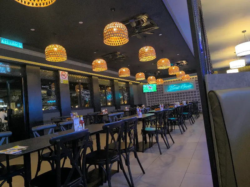 문을 열고 들어선 브루 하우스는 세련되면서도 아늑한 분위기가 인상적이었습니다. 은은한 조명이 공간을 부드럽게 감싸고, 편안한 음악이 흐르는 가운데 사람들의 웃음소리가 활기를 더했습니다. 프랜차이즈 매장 특유의 깔끔함과 멋스러움이 느껴지는 인테리어는, 마치 잘 꾸며진 클럽에 온 듯한 착각을 불러일으켰습니다. 리뷰에서 언급된 것처럼, 밝고 차분한 분위기의 완벽한 균형은 쿠알라룸푸르의 더위를 잊게 해주는 시원한 에어컨과 어우러져 더욱 쾌적하게 느껴졌습니다.