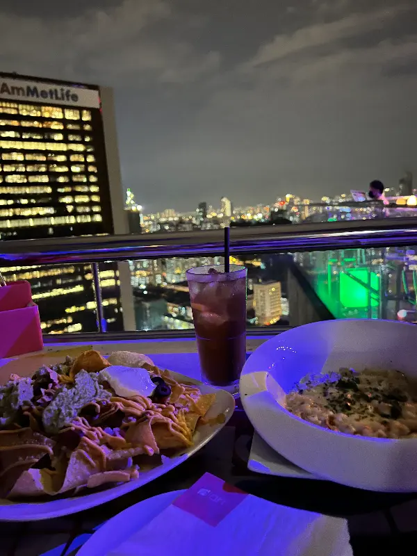 어둠 속에서 빛나는 AmMetLife 빌딩을 비롯한 고층 건물들은 웅장함을 뽐내고, 그 사이를 가로지르는 도로의 궤적은 도시의 역동성을 생생하게 보여줍니다. 탁 트인 공간에서 시원한 바람을 맞으며 이 모든 풍경을 감상하는 것은, 일상의 스트레스를 잊게 해주는 최고의 휴식입니다. 특히 해질 무렵 방문하면, 붉게 물드는 하늘과 도시의 조명이 어우러져 더욱 낭만적인 분위기를 만끽할 수 있습니다. 풀사이드 좌석에 앉아 석양을 감상하며 여유로운 시간을 보내는 것은, 상상만으로도 황홀합니다.