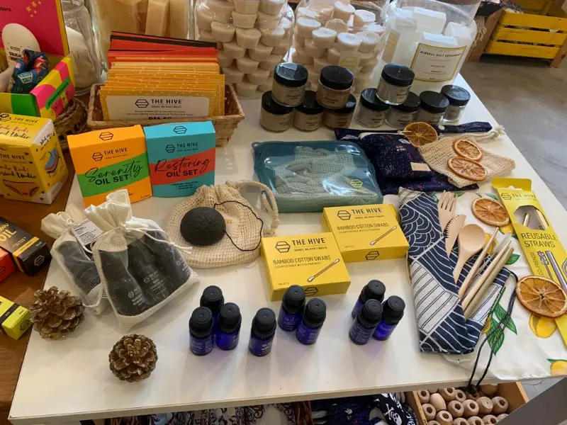 The Hive는 단순히 ‘물건을 사는 곳’이 아닌, ‘가치를 사는 곳’입니다. 로션, 향수, 화장품 등 다양한 제품들이 플라스틱 포장 없이 진열되어 있는 모습은 신선한 충격으로 다가옵니다. 지역 소규모 생산자들을 지원하는 제품들은 품질 또한 훌륭하여, 소비가 곧 환경 보호로 이어지는 경험을 선사합니다.