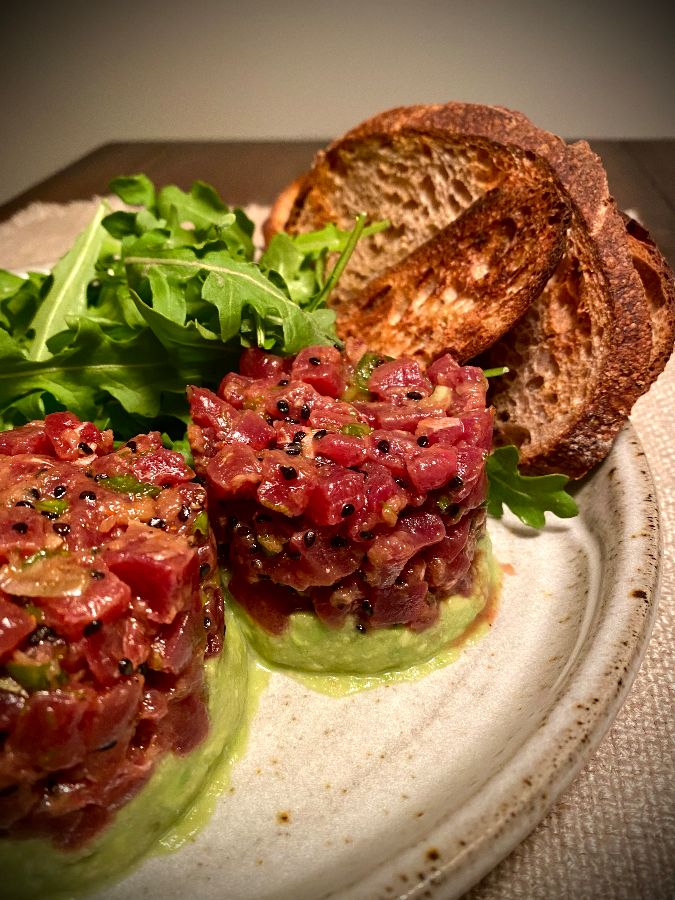 특히 가스페지에서 맛본 참치 타르타르는 ‘Mon Poisson’의 자랑스러운 메뉴 중 하나입니다. 신선한 참치를 잘게 다져 아보카도 베이스 위에 올린 이 요리는 입안 가득 퍼지는 고소함과 부드러움이 일품입니다. 검은깨가 솔솔 뿌려져 시각적인 아름다움까지 더하며, 곁들여진 바삭한 토스트와 신선한 루콜라는 맛의 균형을 완벽하게 잡아줍니다. 이처럼 ‘Mon Poisson’은 단순히 생선을 판매하는 것을 넘어, 최고의 미식 경험을 위한 모든 것을 제공하려 노력합니다.