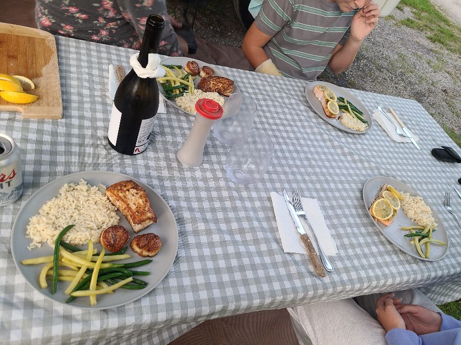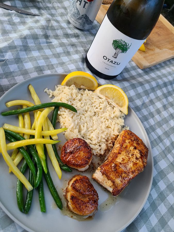 ‘Mon Poisson’의 해산물은 집에서뿐만 아니라, 자연 속에서도 빛을 발합니다. 한 방문객은 캠핑장에서 ‘Mon Poisson’에서 구매한 해산물로 환상적인 야외 만찬을 즐겼다고 전합니다. 넉넉한 체크무늬 식탁보가 깔린 테이블 위에는 노릇하게 구워진 생선 필레와 통통한 가리비, 그리고 윤기 흐르는 밥과 신선한 그린빈스가 정갈하게 놓여 있습니다.