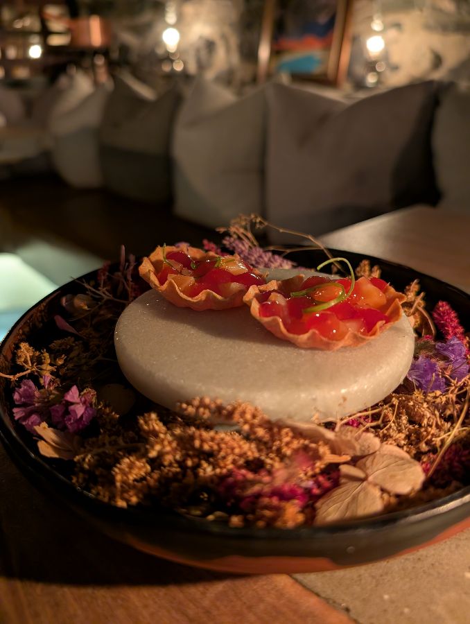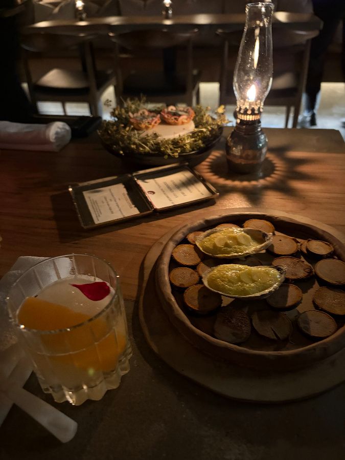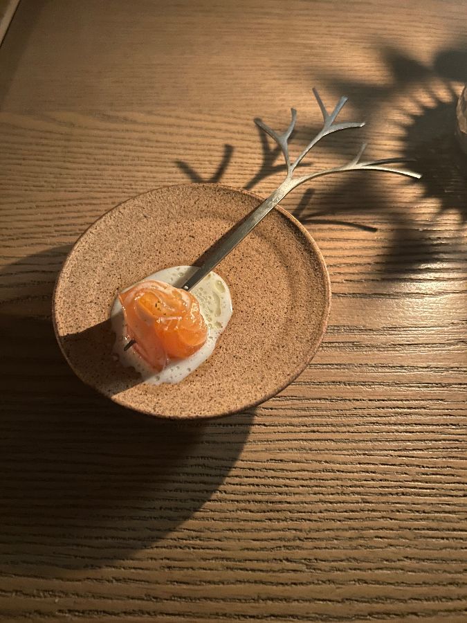문을 열고 들어서는 순간, 시간과 공간을 초월한 듯한 기분이 들었다. 레버와 샤레스트 하우스의 아치형 천장이 만들어내는 웅장함, 정성과 세련미가 느껴지는 인테리어는 마치 다른 세계에 온 듯한 착각을 불러일으켰다. 은은하게 퍼지는 조명은 아늑함을 더하고, 테이블 간 간격은 프라이빗한 식사를 즐길 수 있도록 배려한 듯했다. 첫인상부터 완벽한 이곳은, 앞으로 펼쳐질 미식 여정에 대한 기대감을 한껏 끌어올렸다.