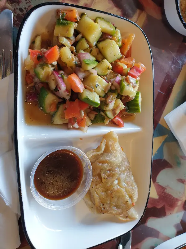 오이, 파인애플, 토마토 등 신선한 채소로 만든 샐러드는 상큼하고 건강한 맛이었다. 샐러드에 곁들여진 프렌치 드레싱은 달콤하면서도 새콤해 입맛을 돋우었다.