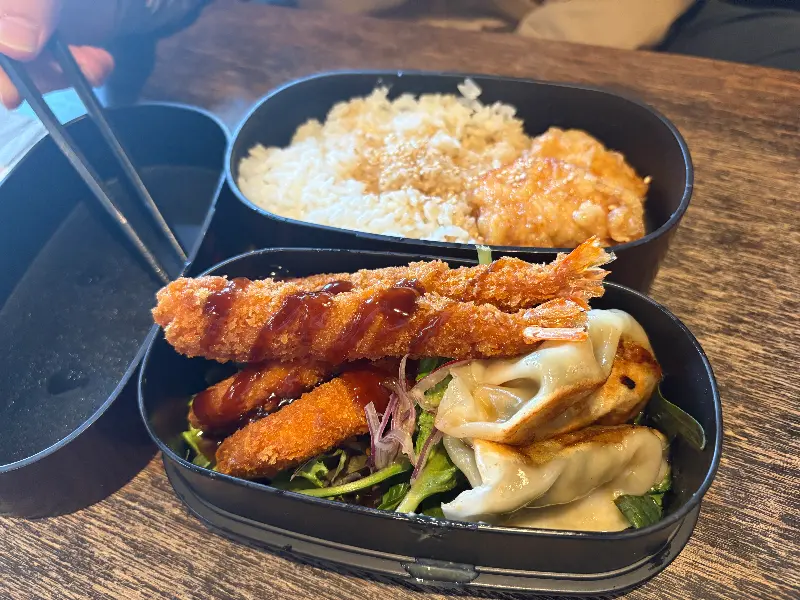 이곳에서는 치킨동, 런치박스, 소유라멘, 사시미 등 다양한 메뉴를 맛볼 수 있습니다. 여러 명이 함께 방문하여 다양한 메뉴를 시켜 나눠 먹는 것도 좋은 방법입니다. 런치박스는 튀김, 교자, 샐러드 등 다양한 음식을 한 번에 즐길 수 있어서 좋았습니다.