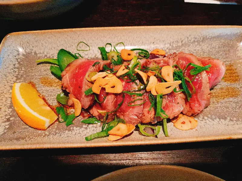 평소에 쉽게 접하기 어려웠던 타다끼를 처음 맛보았습니다. 겉은 살짝 익고 속은 촉촉한 타다끼는, 입안에서 사르르 녹는 듯했습니다. 신선한 재료와 정성스러운 손길이 느껴지는 맛이었습니다. 혼자 방문했음에도 불구하고, 타다끼를 맛보는 동안 외로움을 느낄 새도 없이 음식에 집중할 수 있었습니다.