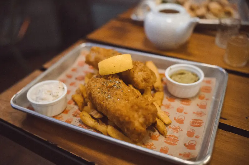 잠시 후, 테이블 위로 커다란 타코 3개, 푸짐한 양의 피시 앤 칩스와 으깬 완두콩, 그리고 한국식 프라이드 치킨 윙이 놓였다. 먹음직스러운 비주얼에 감탄하며 사진을 찍었다.