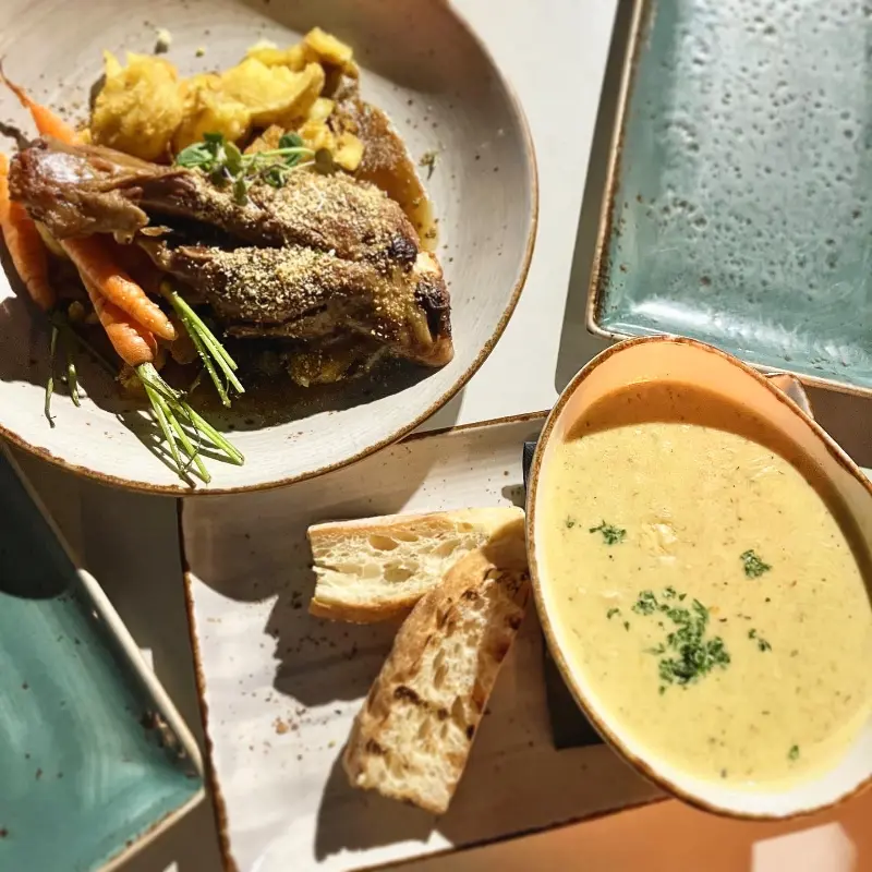 “피어”의 메뉴는 다양한 해산물 요리와 스테이크, 그리고 뉴질랜드 특산 요리로 구성되어 있습니다. 저는 이곳의 대표 메뉴인 서로인 스테이크와 필스너 맥주를 주문했습니다. 스테이크가 나오기 전, 식전 빵과 함께 제공된 버터는 부드럽고 고소한 풍미가 일품이었습니다. 잠시 후, 드디어 기다리고 기다리던 스테이크가 등장했습니다.