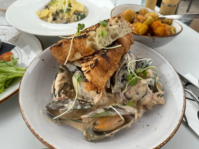 “피어”의 가장 큰 매력은 단연 환상적인 호수 뷰입니다. 마치 한 폭의 그림 같은 와카티푸 호수가 눈앞에 펼쳐지는 야외 테이블에 앉아 있노라면, 세상의 모든 근심이 사라지는 듯합니다. 잔잔하게 빛나는 호수와 그 위를 유유자적 떠다니는 요트, 그리고 멀리 보이는 설산의 풍경은 그야말로 압권입니다. 저녁 노을이 호수에 반사되어 붉게 물드는 모습은, 넋을 잃고 바라볼 만큼 아름다웠습니다.