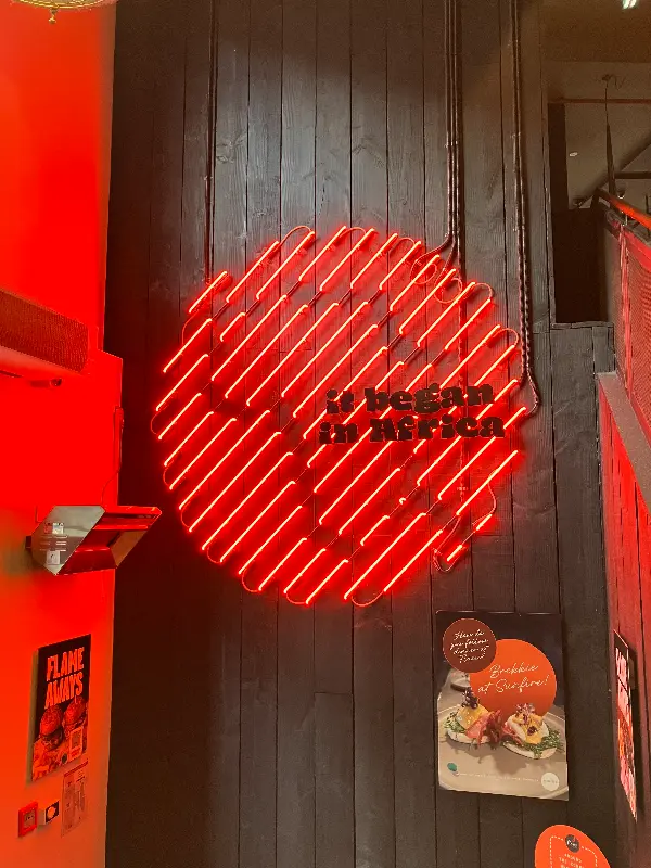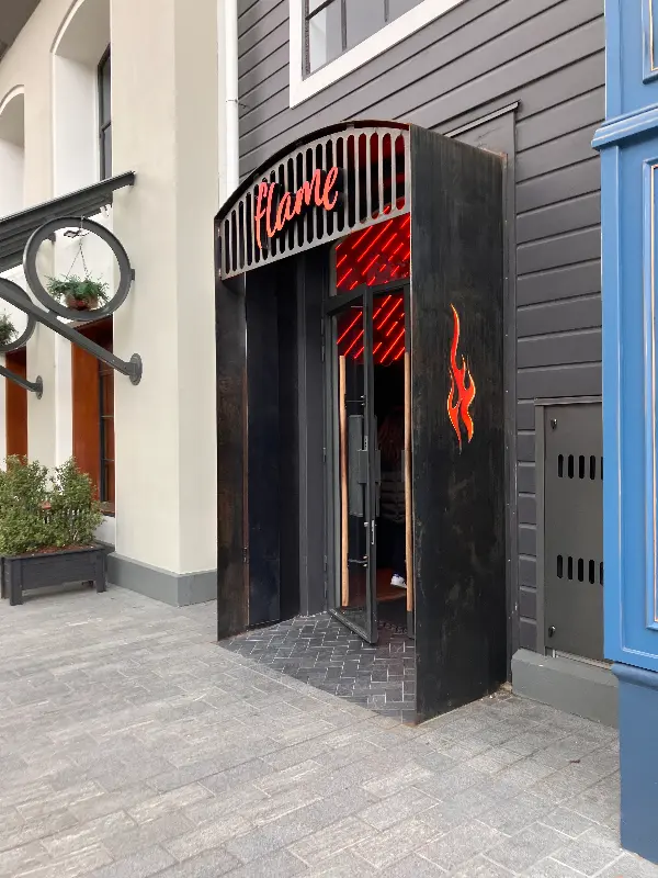 FLAME의 입구는 첫인상부터 강렬했다. 어두운 나무색 외관에 붉은색 네온사인으로 쓰여진 “FLAME”이라는 글자가 불타오르는 듯한 인상을 주었다. 입구 옆에 새겨진 불꽃 마크 역시 FLAME이라는 이름에 걸맞게 뜨겁고 열정적인 분위기를 자아냈다. 마치 다른 세계로 들어가는 듯한 느낌을 받으며 문을 열었다.