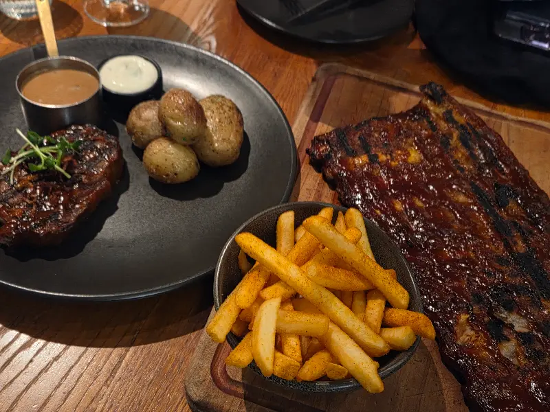 FLAME의 시그니처 메뉴인 폭립은 기대를 많이 했지만, 솔직히 조금 아쉬웠다. 몇몇 리뷰에서 “폭립은 너무 짜고 고기가 질겨요.”라는 평이 있었는데, 실제로 먹어보니 간이 조금 센 편이었다. 고기도 부드럽기보다는 약간 퍽퍽한 느낌이 들었다. 하지만 다른 메뉴들이 워낙 훌륭했기에, 폭립의 아쉬움은 금세 잊혀졌다.