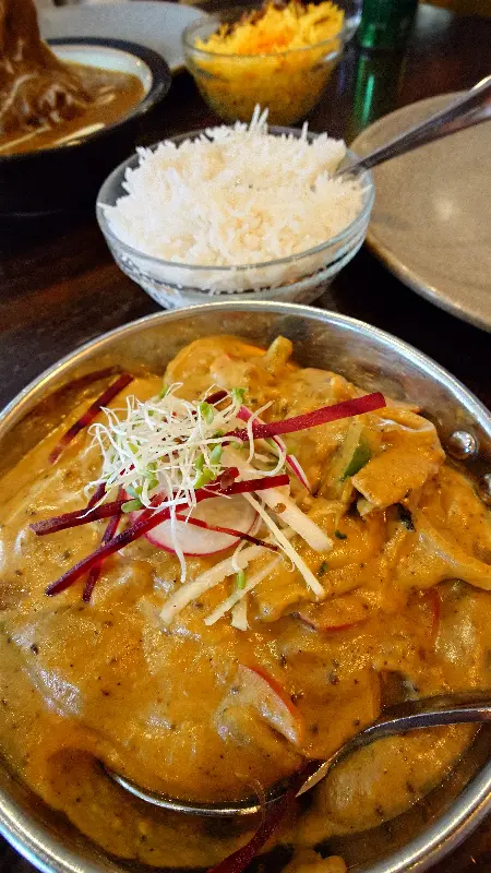 레스토랑에 들어서자마자 가장 먼저 눈에 띈 것은 깔끔하면서도 아늑한 분위기였다. 따뜻한 조명 아래 편안하게 배치된 테이블들은 마치 인도 가정집에 초대받은 듯한 느낌을 주었다. 직원들은 하나같이 친절하고 상냥했는데, 특히 마노즈라는 직원은 우리에게 최고의 서비스를 제공해 주었다. 그는 우리가 매운맛을 잘 못 먹는다는 점을 고려하여 순한 맛의 메뉴를 추천해 주었고, 우리의 취향에 맞는 향신료와 고기 종류를 꼼꼼하게 물어봐 주었다. 그의 세심한 배려 덕분에 우리는 메뉴 선택에 어려움 없이 우리의 입맛에 딱 맞는 요리들을 주문할 수 있었다.