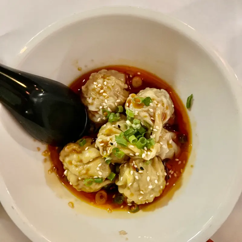 베이징 다이너스티는 딤섬과 만두, 국수를 주력으로 하는 곳입니다. 메뉴판을 펼쳐보니 다양한 종류의 딤섬과 만두, 국수가 있었습니다. 고민 끝에 매콤한 돼지고기 만두와 샤오롱바오, 완탕면, 그리고 소스를 넣지 않은 팝 치킨과 로마가이를 주문했습니다. 음식이 나오기 전, 따뜻한 차가 먼저 나왔습니다. 은은한 향이 나는 차를 마시며 음식을 기다리니 마음이 차분해지는 기분이었습니다.