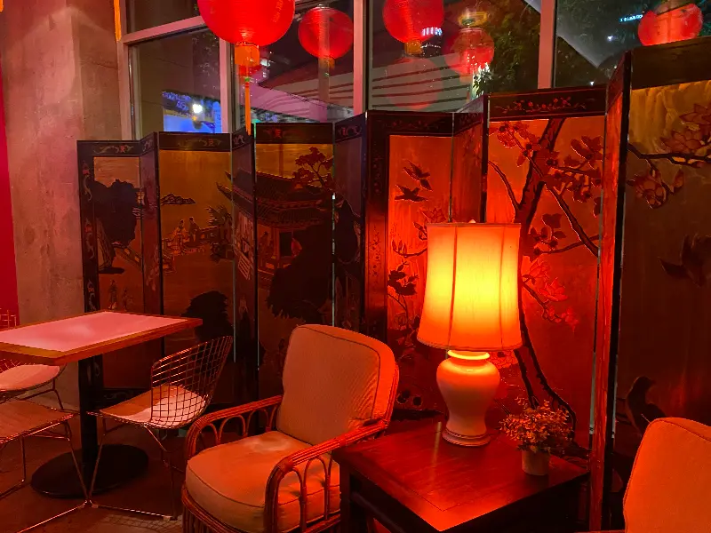 베이징 다이너스티의 내부는 붉은색 조명과 중국풍 소품들이 조화롭게 어우러져 독특한 분위기를 연출합니다. 특히 눈에 띄는 것은 천장에 매달린 붉은 홍등들이었습니다. 은은하게 빛나는 홍등은 공간에 따뜻함과 활기를 불어넣어 줬습니다. 창밖으로 보이는 야경과 어우러져 더욱 로맨틱한 분위기를 자아냈죠. 붉은색은 행운과 번영을 상징한다고 하니, 이곳에서 식사를 하는 것만으로도 좋은 기운을 받을 수 있을 것 같았습니다.