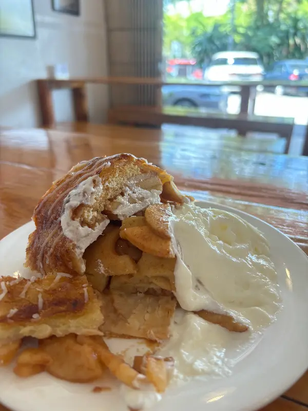 샌드위치와 미트로프로 배를 채웠지만, 디저트를 포기할 수는 없었다. 애플 슈트루델은 달콤한 사과와 바삭한 페이스트리의 조합이 환상적이었다. 따뜻하게 구워진 슈트루델 위에 얹어진 차가운 크림은 입안에서 사르르 녹아내렸고, 은은한 시나몬 향은 달콤함을 더욱 깊게 만들었다. 애플 슈트루델은 눈으로 보기에도 아름다웠지만, 입으로 맛보는 순간, 그 황홀경에 빠져들 수밖에 없었다. 사진에서처럼, 겉은 바삭하고 속은 촉촉한 애플 슈트루델은 잊을 수 없는 맛이었다.
