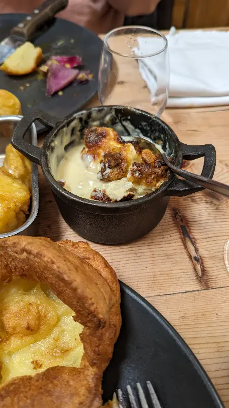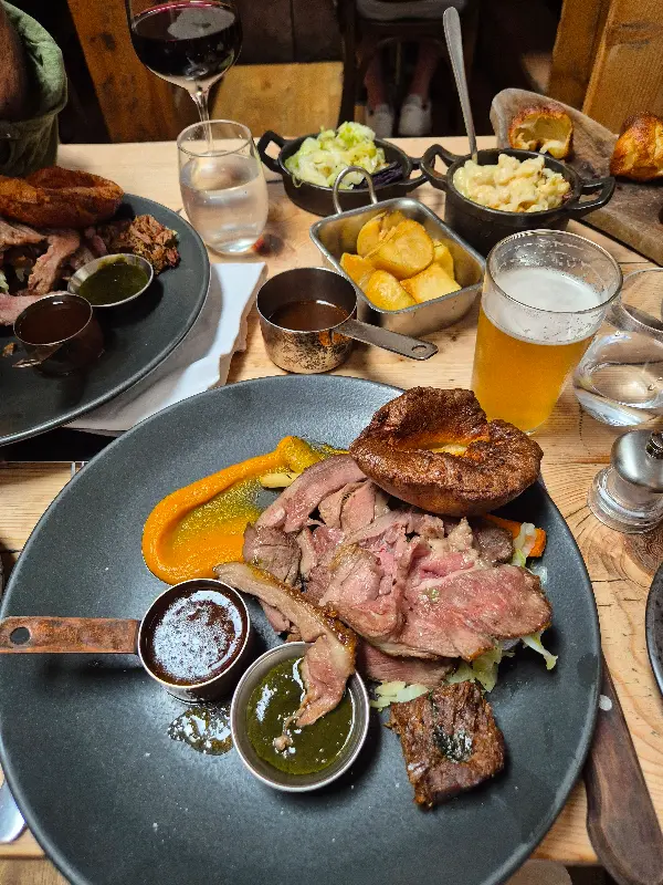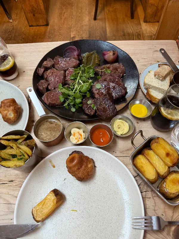 대체로 만족스러운 식사였지만, 아쉬운 점도 있었습니다. 선데이 로스트의 양고기는 일부 힘줄이 많고 맛이 부족하다는 의견이 있었습니다. 또한, 일부 방문객은 서비스가 다소 급하게 느껴졌다고 합니다. 음식을 빨리 주문하도록 재촉하거나, 다음 손님을 위해 자리를 비워주기를 바라는 듯한 태도는 개선될 필요가 있어 보입니다. 접시에 담겨 나오는 음식을 빼달라는 요청이 받아들여지지 않은 점도 아쉬웠습니다.