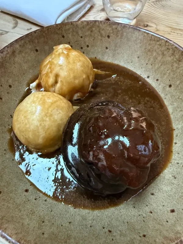 Knife에서는 식사를 주문하면 따뜻한 빵과 그레이비 요크셔 푸딩을 무료로 제공합니다. 갓 구운 빵은 겉은 바삭하고 속은 촉촉했으며, 그레이비 소스에 찍어 먹으니 정말 꿀맛이었습니다. 특히 작은 요크셔 푸딩은 겉은 바삭하고 속은 부드러운 완벽한 조화였고, 따뜻한 그레이비 소스와 함께 먹으니 입 안에서 사르르 녹는 듯했습니다. 이러한 뜻밖의 선물은 Knife에서의 식사를 더욱 특별하게 만들어 주었습니다.