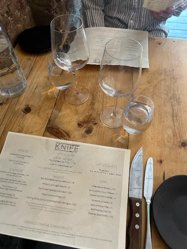 Knife는 전반적으로 훌륭한 음식과 친절한 서비스, 아늑한 분위기를 제공하는 클래펌 지역의 보석 같은 맛집입니다. 몇 가지 아쉬운 점은 있지만, 충분히 개선될 수 있는 부분이라고 생각합니다. 스테이크를 좋아하거나 특별한 날을 기념하고 싶다면, Knife를 강력 추천합니다. 예약은 필수이니, 방문 전에 꼭 예약하세요! Knife에서의 멋진 식사 경험을 통해 행복한 추억을 만들어 보세요. 벌써 다시 가고 싶어집니다!