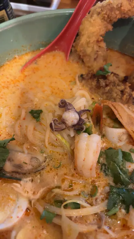 말레이시아식 야채 카레 수프는 추운 날씨에 완벽한 선택이었다. 진한 카레 향과 푸짐한 해산물, 야채가 어우러져 깊은 풍미를 자아냈다.