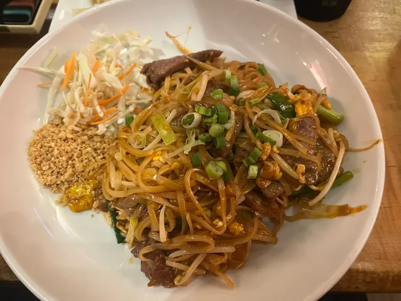 드디어 기다리고 기다리던 팟타이가 나왔다. 접시 가득 담긴 팟타이는 보기만 해도 군침이 돌았다. 볶은 쌀국수, 새우, 숙주, 계란, 땅콩 등의 재료가 조화롭게 어우러져 있었다. 한 입 먹는 순간, 마치 태국에 와 있는 듯한 기분이 들었다. 달콤하면서도 매콤한 소스가 입맛을 돋우었고, 신선한 재료들이 풍성한 식감을 선사했다.
