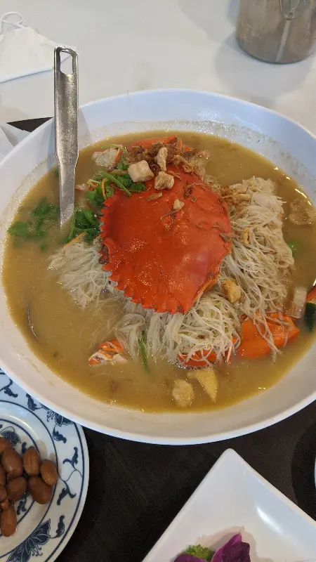 드디어 기다리고 기다리던 크랩비훈이 테이블에 놓였습니다. 뽀얀 김이 모락모락 피어오르는 모습은 마치 예술 작품과도 같았습니다. 커다란 게 한 마리가 통째로 들어간 비훈은 그 비주얼부터 압도적이었습니다. 사진에서 보던 것보다 훨씬 푸짐하고 먹음직스러웠습니다. 코를 찌르는 향긋한 향신료 냄새는 식욕을 더욱 자극했습니다.