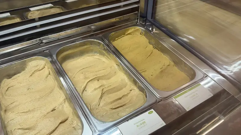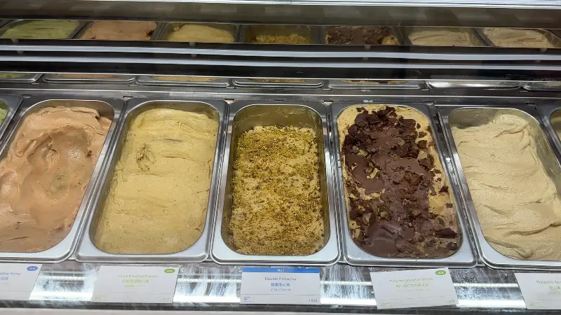쇼케이스 안에는 형형색색의 아이스크림들이 진열되어 있었다. 그중에서도 나의 시선을 사로잡은 것은 단연 피스타치오 아이스크림이었다. 옅은 녹색 빛깔이 마치 보석처럼 빛나고 있었다.
