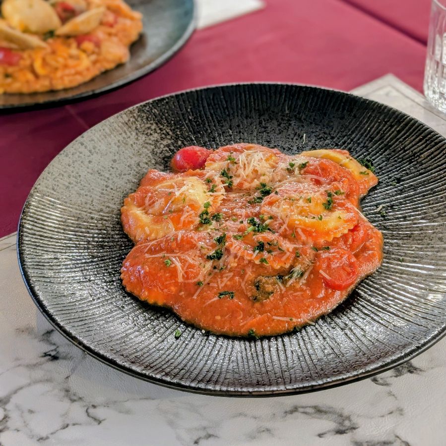 부드러운 라비올리와 토마토 소스의 완벽한 조화는 잊을 수 없는 맛을 선사합니다.