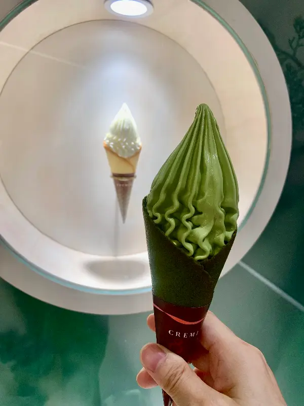 크레미아에서는 우유 맛 외에도 다양한 맛의 아이스크림을 판매하고 있습니다. 친구의 추천에 따라, 새로 나왔다는 카라멜 크렘 브륄레 맛과 말차 맛도 맛보기로 했습니다.