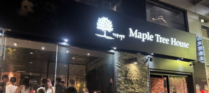 어둠이 짙게 드리운 거리, 한 줄기 빛처럼 빛나는 “Maple Tree House” 간판이 눈에 들어왔다. 사진에서 보았던 그 모습 그대로였다. 모던한 외관은 고급스러움을 풍겼고, 은은하게 새겨진 단풍잎 로고는 세련미를 더했다. 식당 안으로 들어서자, 활기찬 분위기와 함께 맛있는 음식 냄새가 코를 간지럽혔다.