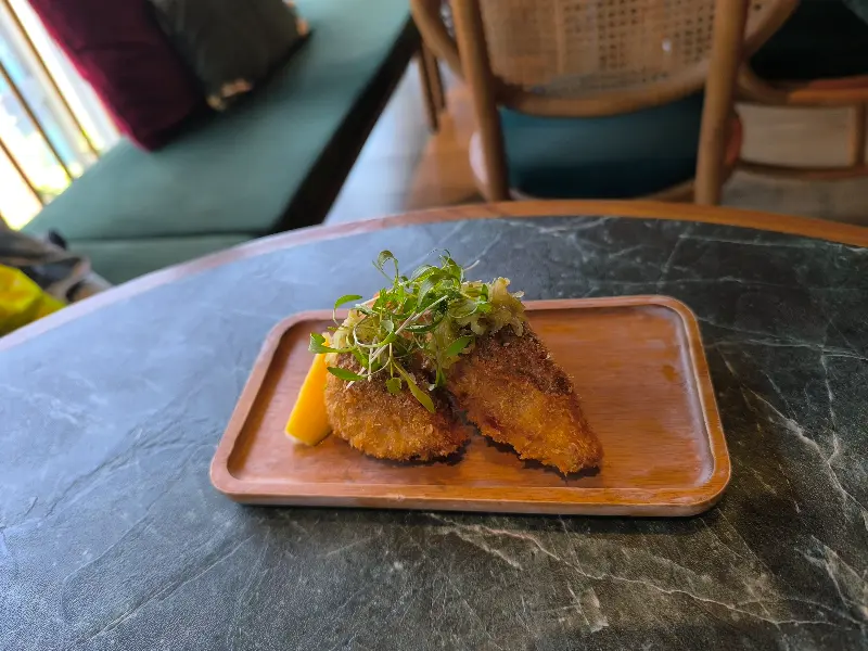 구바미 소셜은 대만과 프랑스의 영감을 완벽하게 조화시킨 비스트로다. 2014년 아시아 최고의 여성 셰프 중 한 명으로 선정된 첸 란슈 셰프는 원래 프렌치 셰프였다고 한다. 그녀의 요리 철학은, 맛은 물론이고, 화려한 비주얼에도 심혈을 기울이는 것이다. 마치 예술 작품을 감상하는 듯한 즐거움을 선사한다. 메뉴를 펼쳐 들자, 독특하면서도 창의적인 요리들이 눈길을 사로잡았다. 코스 메뉴도 있었지만, 우리는 단품 요리들을 다양하게 주문해서 맛보기로 했다.