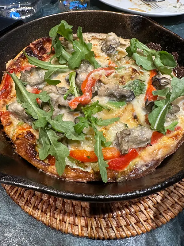 팬에 완벽하게 구워진 오징어 요리도 인상적이었다. 겉은 바삭하고 속은 촉촉했으며, 쫄깃한 식감과 은은한 단맛이 환상적인 조화를 이루었다. 신선한 해산물을 사용한 덕분인지, 재료 본연의 맛이 살아있는 듯했다. 도반 소스를 곁들여 먹으니, 매콤하면서도 감칠맛이 더해져 더욱 풍성한 맛을 느낄 수 있었다.