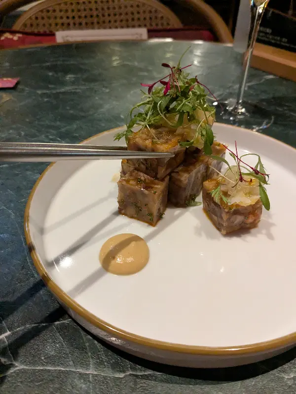 다음으로 도전한 것은 트러플 취두부였다. 사실, 취두부 특유의 냄새 때문에 살짝 망설였지만, 트러플과의 조합이 궁금했다. 젓가락으로 조심스럽게 집어 입에 넣는 순간, 예상치 못한 맛의 향연이 펼쳐졌다. 강렬한 취두부의 향이 트러플의 고급스러운 향과 어우러져, 묘한 조화를 이루는 것이었다. 함께 간 일행은 취두부를 즐겨 먹는 편이라며, 극찬을 아끼지 않았다. 마치 현지 포장마차 수준의 냄새를 고급스럽게 승화시킨 듯한 느낌이었다.