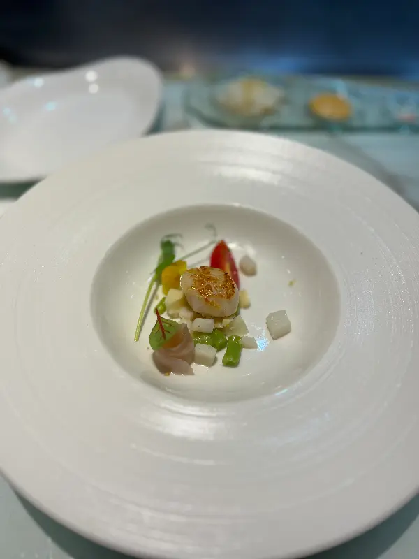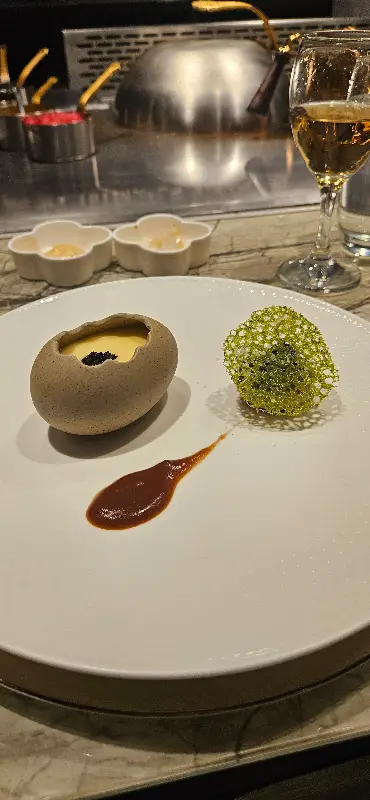 레스토랑 문을 열고 들어서는 순간, 따뜻한 미소와 함께 친절한 안내가 시작되었습니다. 한국어가 가능한 직원의 도움으로 편안하게 자리를 안내받을 수 있었습니다. 마치 고급 호텔에 온 듯한 정중한 서비스는 시작부터 기분 좋게 만들었습니다. 테이블에 앉자마자 메뉴판을 건네받았고, 코스 메뉴에 대한 자세한 설명을 들을 수 있었습니다. 섬세한 배려 덕분에 메뉴 선택에 어려움 없이, 오롯이 음식에 대한 기대감을 높일 수 있었습니다. 기념일임을 미리 언급하자, 특별한 이벤트와 사진 촬영 서비스까지 제공한다는 안내에 감동했습니다. 관광객보다는 현지인들이 주로 찾는 듯한 분위기 또한 특별함을 더했습니다.