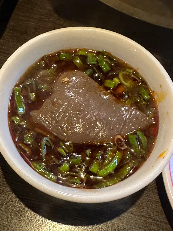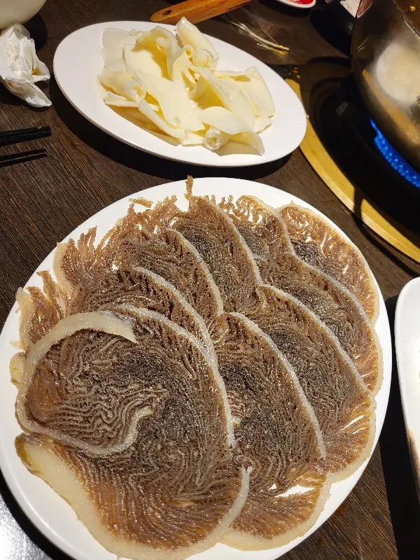 다양한 재료 중에서도 가장 인상 깊었던 것은 바로 우설이었다. 평소에 즐겨 먹는 메뉴는 아니었지만, 현지인 추천을 믿고 용기 내어 주문해 보았다. 얇게 썰어낸 우설을 훠궈에 살짝 익혀 먹으니, 입안에서 사르르 녹는 듯한 부드러운 식감이 일품이었다. 쫄깃하면서도 고소한 풍미가, 왜 현지인들이 우설을 추천했는지 단번에 이해시켜 주었다. 이제 나에게 우설은, 훠궈를 먹을 때 빼놓을 수 없는 필수 메뉴가 되었다.