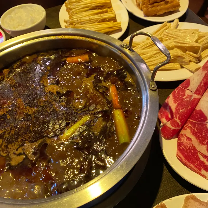 드디어 훠궈가 테이블에 놓였다. 붉은 빛깔의 홍탕은 보기만 해도 입안에 침이 고였다. 국물이 끓기 시작하자, 매콤한 향기가 더욱 강렬하게 코를 자극했다. 젓가락으로 조심스럽게 야채와 고기를 집어 홍탕에 넣었다.