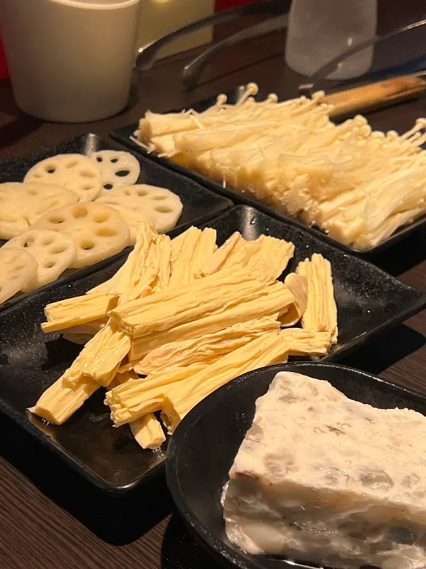 메뉴판을 펼쳐 들고 고민에 빠졌다. 다행히 친절한 직원분께서 서툰 영어와 바디랭귀지를 섞어가며 메뉴를 꼼꼼하게 설명해주셨다. 홍탕과 백탕, 두 가지 육수를 맛볼 수 있는 훠궈를 주문하고, 어떤 재료를 넣을까 행복한 고민에 빠졌다. 싱싱한 야채, 다양한 종류의 고기, 그리고 훠궈에 빠질 수 없는 두부와 선지까지! 마치 보물찾기를 하는 듯한 기분으로, 취향에 맞는 재료들을 하나씩 골라 담았다.