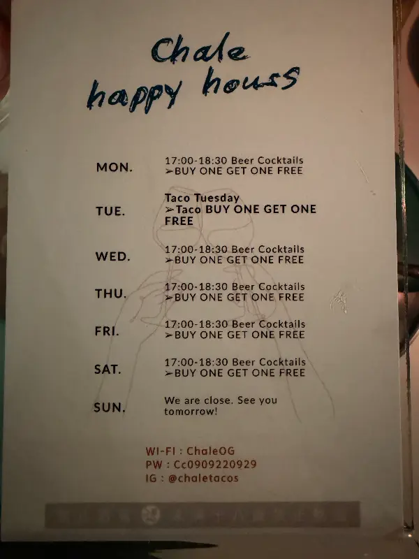 CHALE TACOS, 단순한 타코 가게가 아닌, 맛과 분위기, 그리고 친절함이 어우러진 특별한 공간이었다. 타이중 여행을 계획하고 있다면, CHALE TACOS에서 잊지 못할 미식 경험을 만들어보는 것을 추천한다.