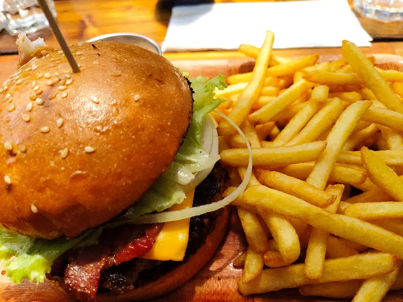 생선 요리 외에도 생선 버거와 감자튀김은 놓칠 수 없는 메뉴입니다. 바삭하게 튀겨진 생선은 부드러운 빵, 신선한 채소와 환상적인 조화를 이루며, 함께 제공되는 감자튀김은 짭짤하면서도 고소한 맛으로 입맛을 돋웁니다. 한 입 베어 물면 바삭한 소리와 함께 퍼지는 풍미는 최고의 만족감을 선사합니다.