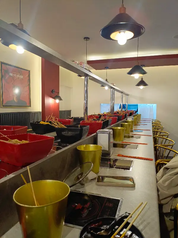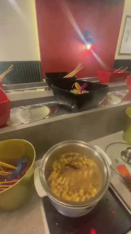 회전식 조리대에는 정말 다양한 재료들이 준비되어 있다. 신선한 야채, 버섯, 두부, 면은 물론이고, 불고기, 피시볼, 게살볼 등 훠궈에 잘 어울리는 재료들이 가득하다. 특히 두부가 정말 맛있었다. 꼬치에 꽂힌 다양한 종류의 고기를 골라 먹는 재미도 빼놓을 수 없다. 다만, 몇몇 후기에서 고기의 질에 대한 아쉬움이 언급되기도 했는데, 이 부분은 개선되면 더욱 좋을 것 같다.