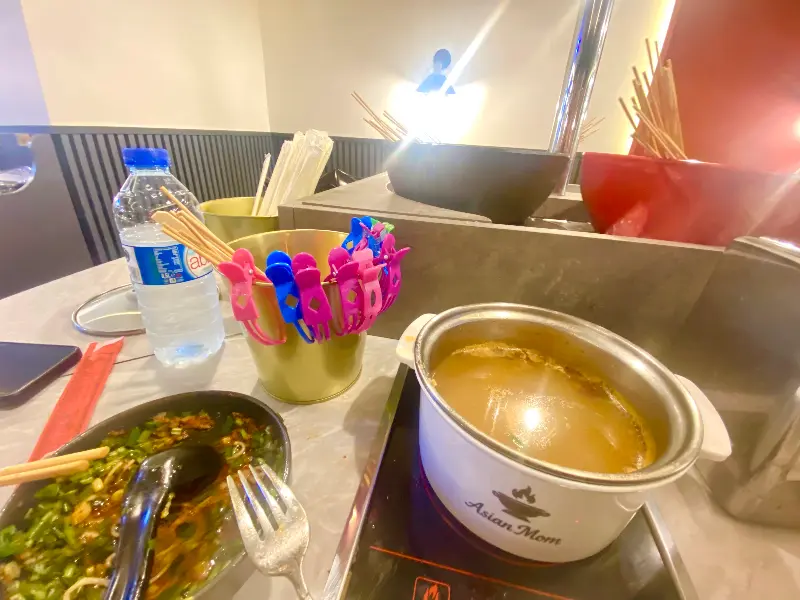 Asian Mom Hot Pot은 위생에도 신경을 많이 쓰는 듯하다. 식사하는 동안 조금 지저분해지긴 했지만, 테이블이나 바닥에 얼룩이나 먼지 하나 없이 깨끗하게 유지되고 있었다. 회전식 조리대 위에 있는 접시에 재료가 적혀 있으면 더욱 좋을 것 같다.