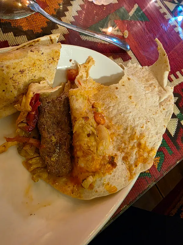고민 끝에 만티와 매콤한 소고기 버거를 주문했다. 잠시 후, 테이블 위에 놓인 음식들을 보고 감탄하지 않을 수 없었다. 특히 만티는 크리미한 소스가 듬뿍 뿌려져 있었고, 신선한 파슬리가 흩뿌려져 있어 보기만 해도 군침이 돌았다.