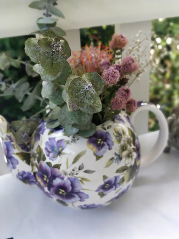 테이블 위에 놓인 꽃 장식, 섬세한 아름다움을 더합니다.