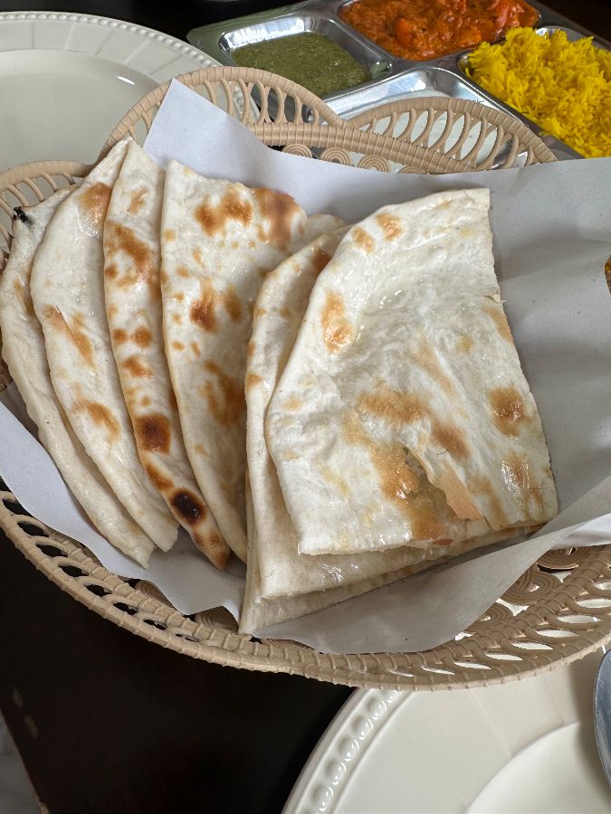 겉은 바삭하고 속은 쫄깃한 버터 난. 커리에 찍어 먹으면 고소한 버터 향과 매콤한 커리의 조화가 환상적이다.