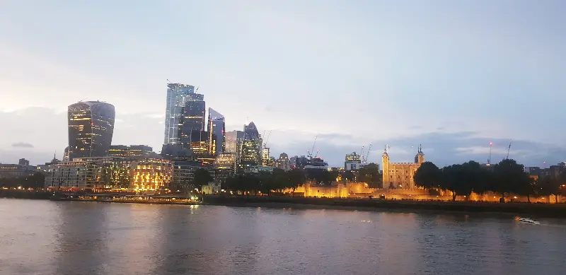 강물에 비치는 런던의 야경은 그야말로 환상적이었다. 타워 브리지와 런던 아이를 비롯한 랜드마크들이 빛을 발하며 템스 강을 수놓는 모습은 감탄을 자아내게 했다.
