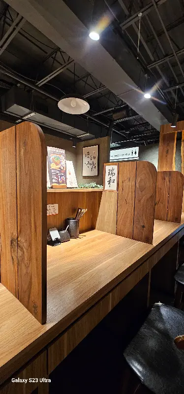 나무 칸막이로 나뉜 개인 부스에 들어서면 아늑함이 감싼다. 은은한 조명 아래, 오롯이 나만을 위한 식탁이 펼쳐진다. 테이블 위에는 휴대폰 거치대까지 마련되어 있어, 혼자 식사하며 영상을 보거나 책을 읽는 여유를 누릴 수 있다. 둘이 방문했을 때는 접이식 칸막이를 열어 함께 식사할 수 있는 점도 매력적이다.