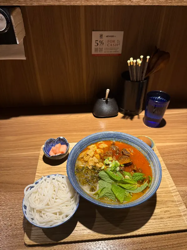 Yunnan Noodles의 대표 메뉴는 단연 윈난 쌀국수다. 다양한 토핑과 깊은 육수의 조화는 한 번 맛보면 잊을 수 없는 강렬한 인상을 남긴다.