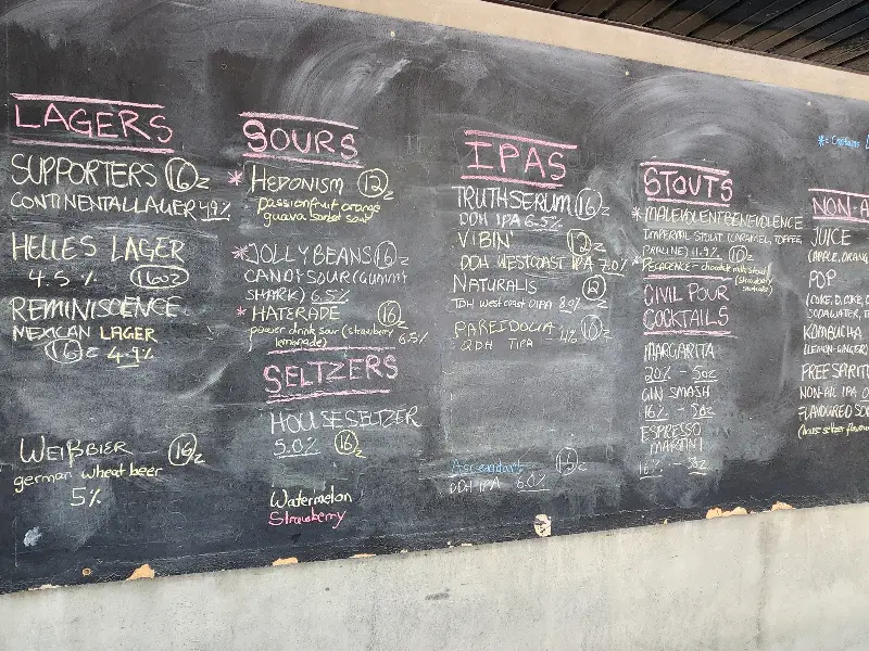 계산대를 가까이에서 볼 수 있도록 바에 앉아 여러 종류의 맥주를 시음해 봤다는 한 고객은, 정말 다양하고 독특한 맥주들이 많았다고 감탄했습니다. 그는 특히 헤도니즘(Hedonism) 사워 맥주와 레인센스(Reinsence) 라거를 강력 추천했습니다. 톡 쏘는 탄산과 과일 향이 어우러진 헤도니즘은 입안 가득 퍼지는 상큼함이 일품이었고, 레인센스는 깔끔하면서도 깊은 풍미가 인상적이었습니다.