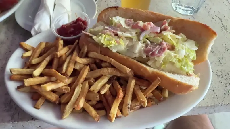 가장 좋았던 점은 맥주와 서비스였다는 한 고객은, 스테이크 샌드위치이탈리안 샌드위치를 ​​주문했는데, 이탈리안 샌드위치는 양상추는 많고 프로슈토와 소프레사타는 너무 적었다고 아쉬움을 표현했습니다. 하지만 그는 청결 관리에 좀 더 신경 써야 할 것 같다고 지적하며, 테이블과 부스 몇 개가 더러웠고, 남자 화장실에는 비누도 없었다고 밝혔습니다. 그는 직원에게 이 사실을 알렸고, 테라스는 막 개장한 참이었다고 덧붙였습니다.