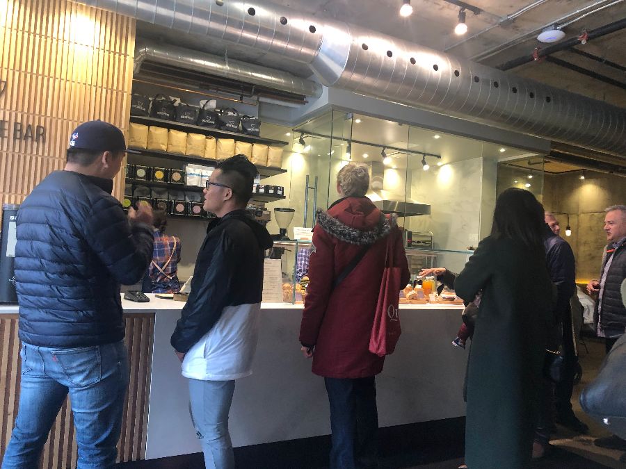 특히 눈길을 사로잡는 것은 길게 뻗은 바 테이블이었습니다. 깔끔한 흰색 대리석 상판과 우드 패널로 마감된 바 아래쪽은 따뜻한 느낌을 주며, 그 위에는 웅장한 에스프레소 머신이 자리하고 있습니다. 바리스타들의 분주하면서도 능숙한 손놀림은 커피에 대한 기대를 한껏 높여주었죠. 사람들의 발길이 끊이지 않는 곳임에도 불구하고, 묘하게도 조용하고 깔끔한 분위기가 유지되는 것이 인상 깊었습니다. 이는 아마도 이곳을 찾는 대부분의 손님들이 커피와 함께 자신의 시간을 소중히 여기는 이들이었기 때문일 것입니다.