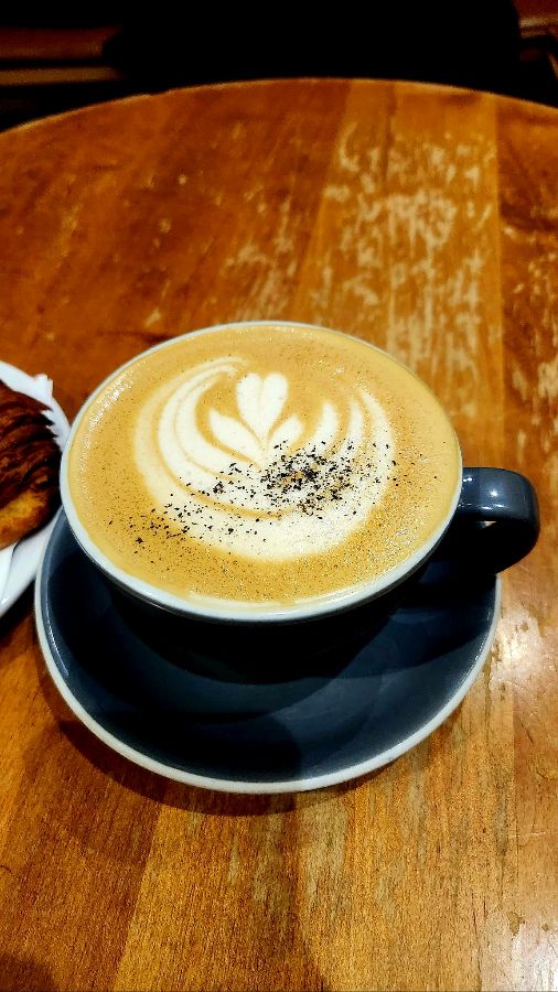 메뉴를 고르기 위해 카운터에 다가서자, 바리스타는 친절한 미소로 맞아주었습니다. 이곳의 바리스타들은 단순히 음료를 제공하는 것을 넘어, 손님 한 분 한 분에게 따뜻한 환대를 건네는 듯했습니다. 다양한 커피 메뉴 중에서도 특히 라떼 아트가 예쁘다는 평이 많아 라떼를 주문했습니다. 잠시 후, 따뜻한 라떼 한 잔이 제 테이블에 놓였습니다. 우유 거품 위에 정교하게 그려진 하트 모양의 라떼 아트는 그 자체로 작은 예술 작품 같았습니다.